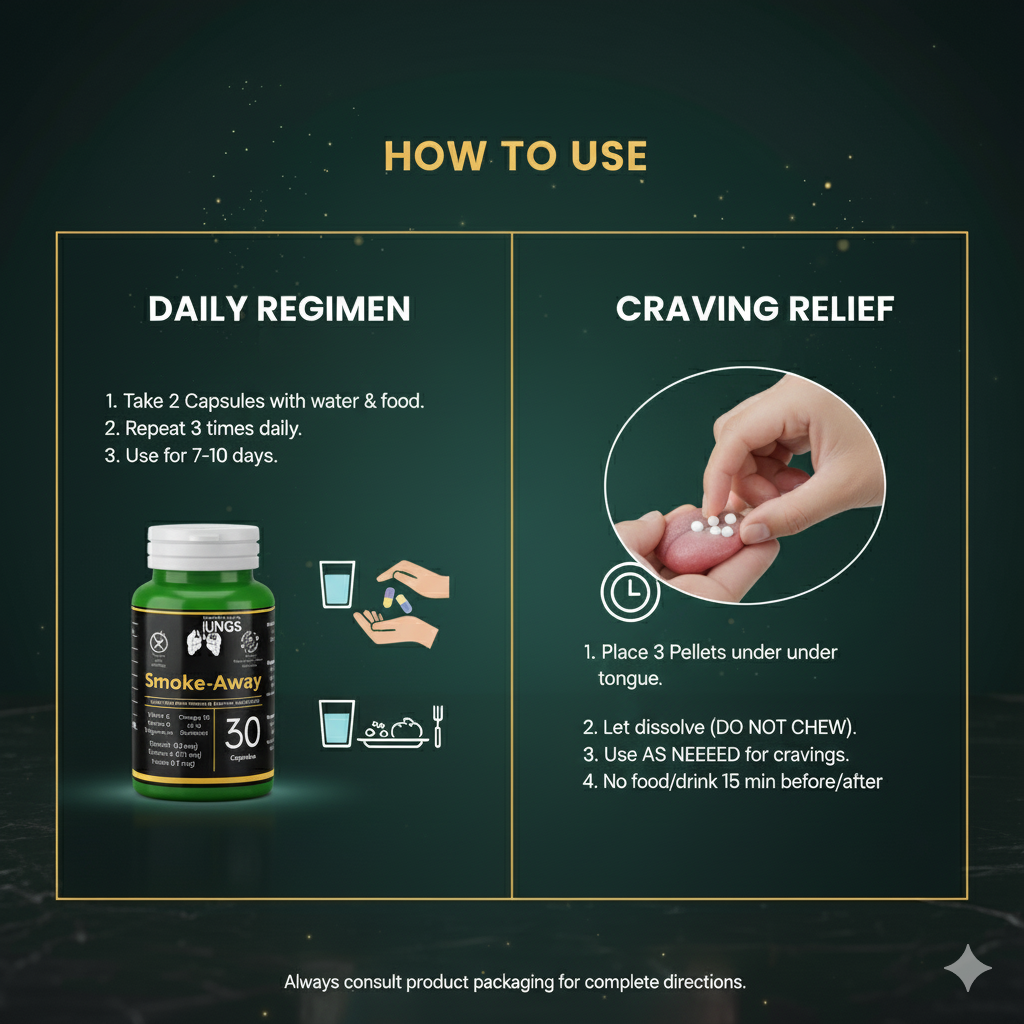 Support your journey to a smoke-free life with natural, non-addictive ingredients. Smoke-Away helps reduce cravings, repair lung damage, and promote cleaner, healthier breathing.